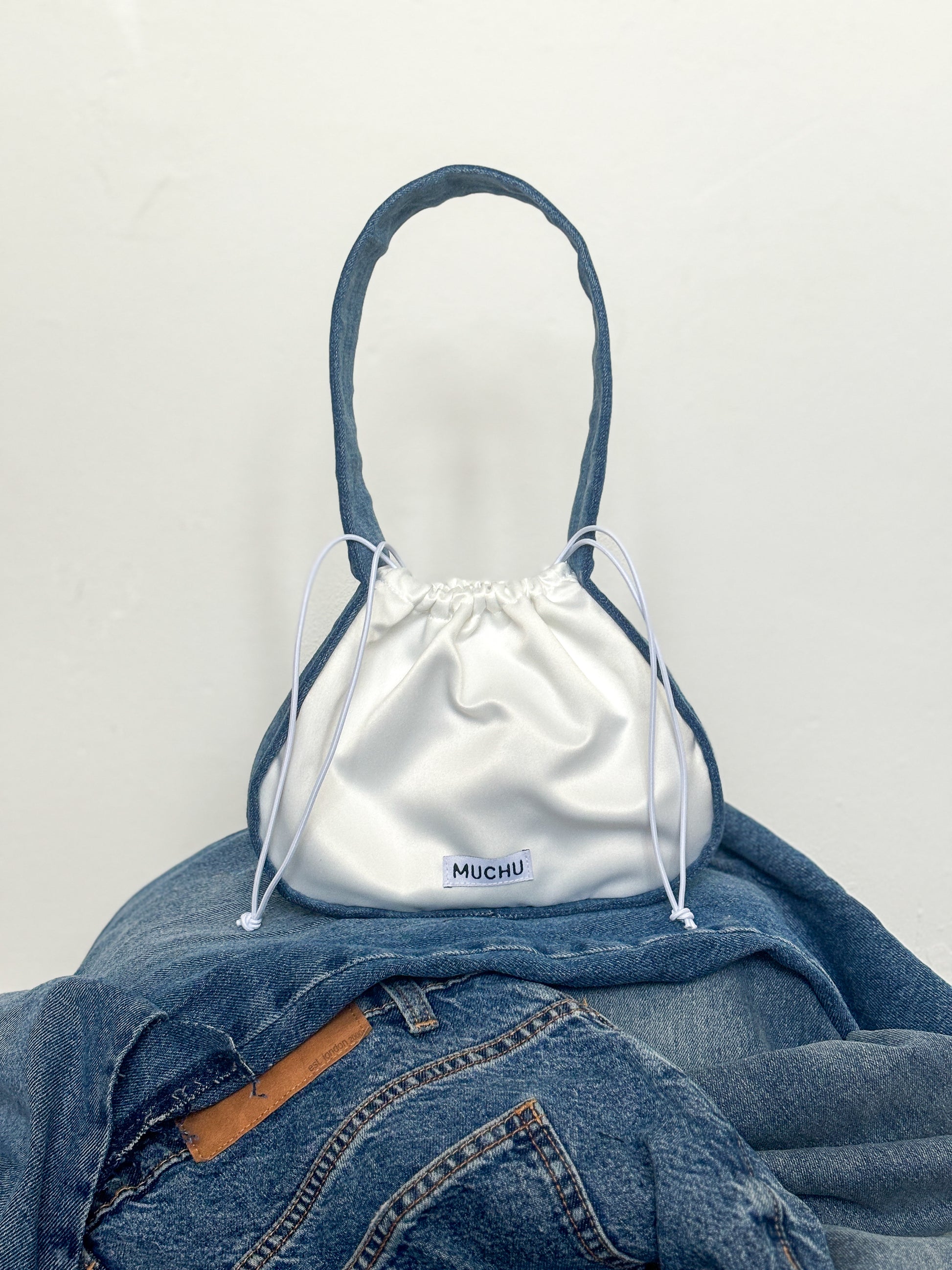 Coin Bag - Satin White/Denim