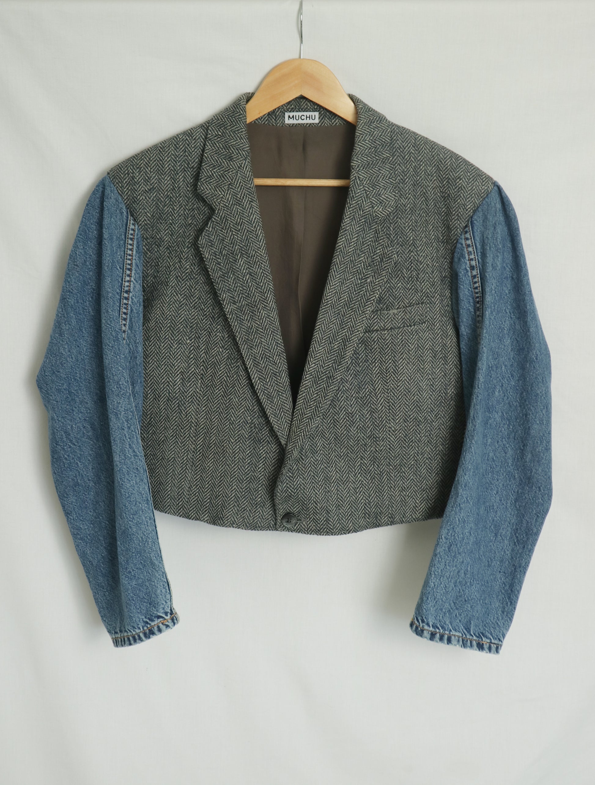 Cropped Blazer reworked from a men tweed blazer and jeans.